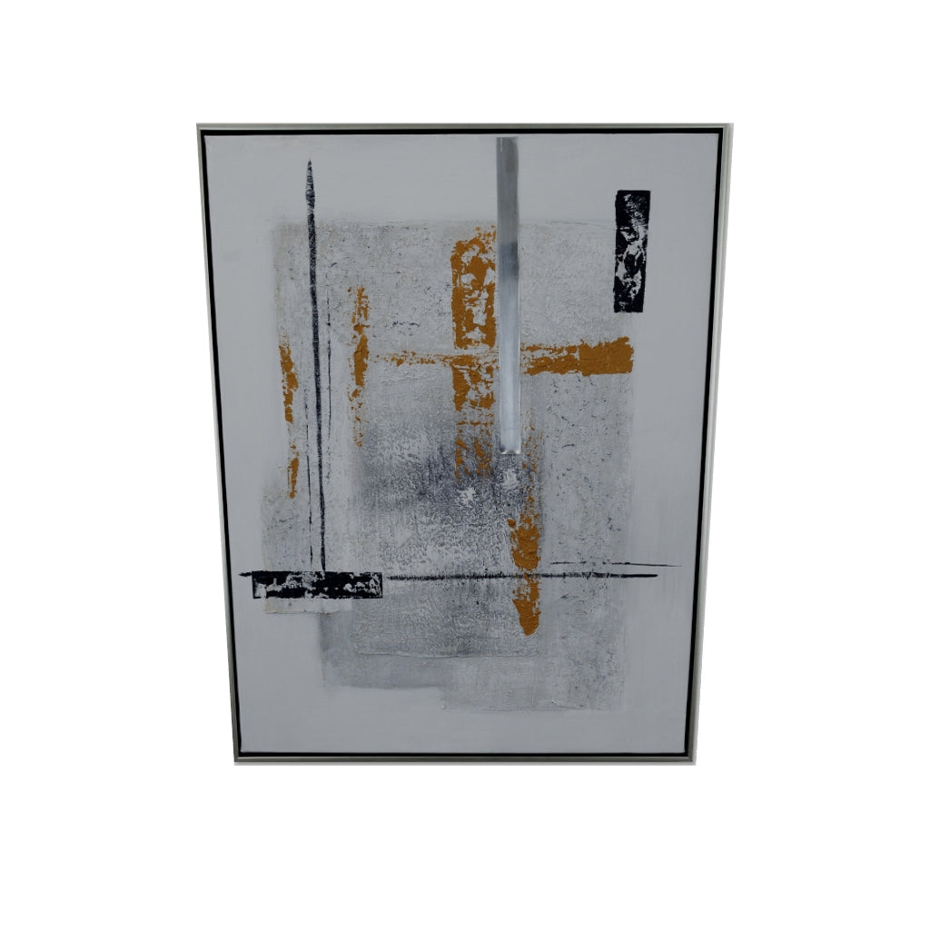 Black and yellow 1 è un quadro astratto nei colori giallo, nero e grigio, interamente dipinto a mano su pregiata tela di cotone e provvisto di applicazioni.