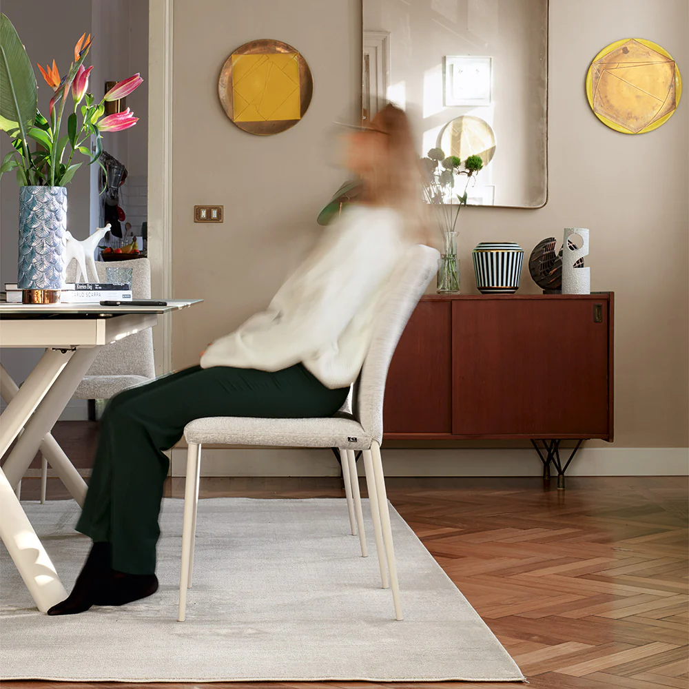 La sedia Atlas offre un'esperienza di relax dinamico grazie al suo design innovativo. Il suo schienale flessibile garantisce un supporto ottimale, permettendo di godere di una pausa in totale comfort, con la possibilità di dondolarsi in sicurezza. La seduta, realizzata con cinghie elastiche, assicura un elevato livello di ergonomicità, adattandosi perfettamente alla postura del corpo. La tappezzeria morbida ed elegante conferisce alla sedia un aspetto raffinato, mentre il suo design versatile si adatta facilmente a qualsiasi tavolo, rendendola ideale per ogni ambiente.