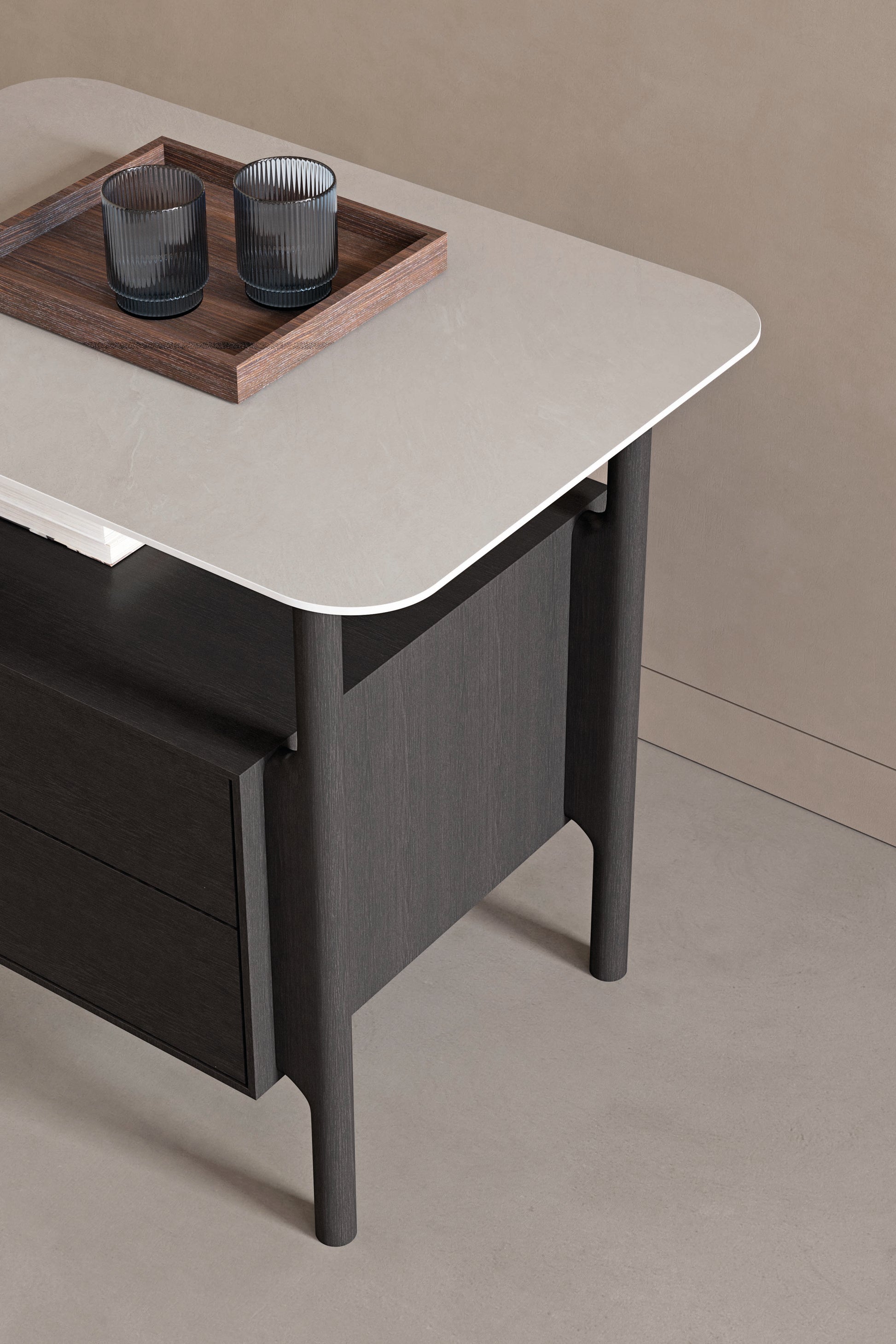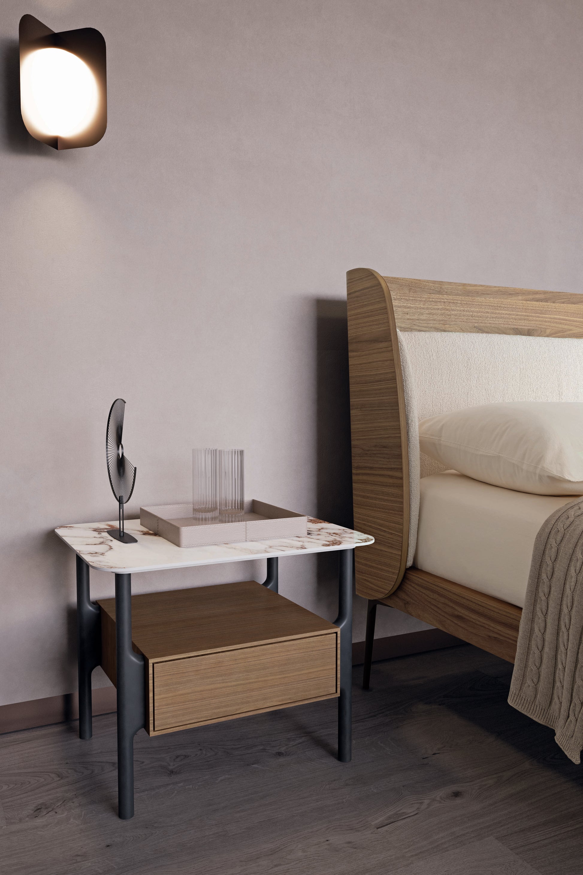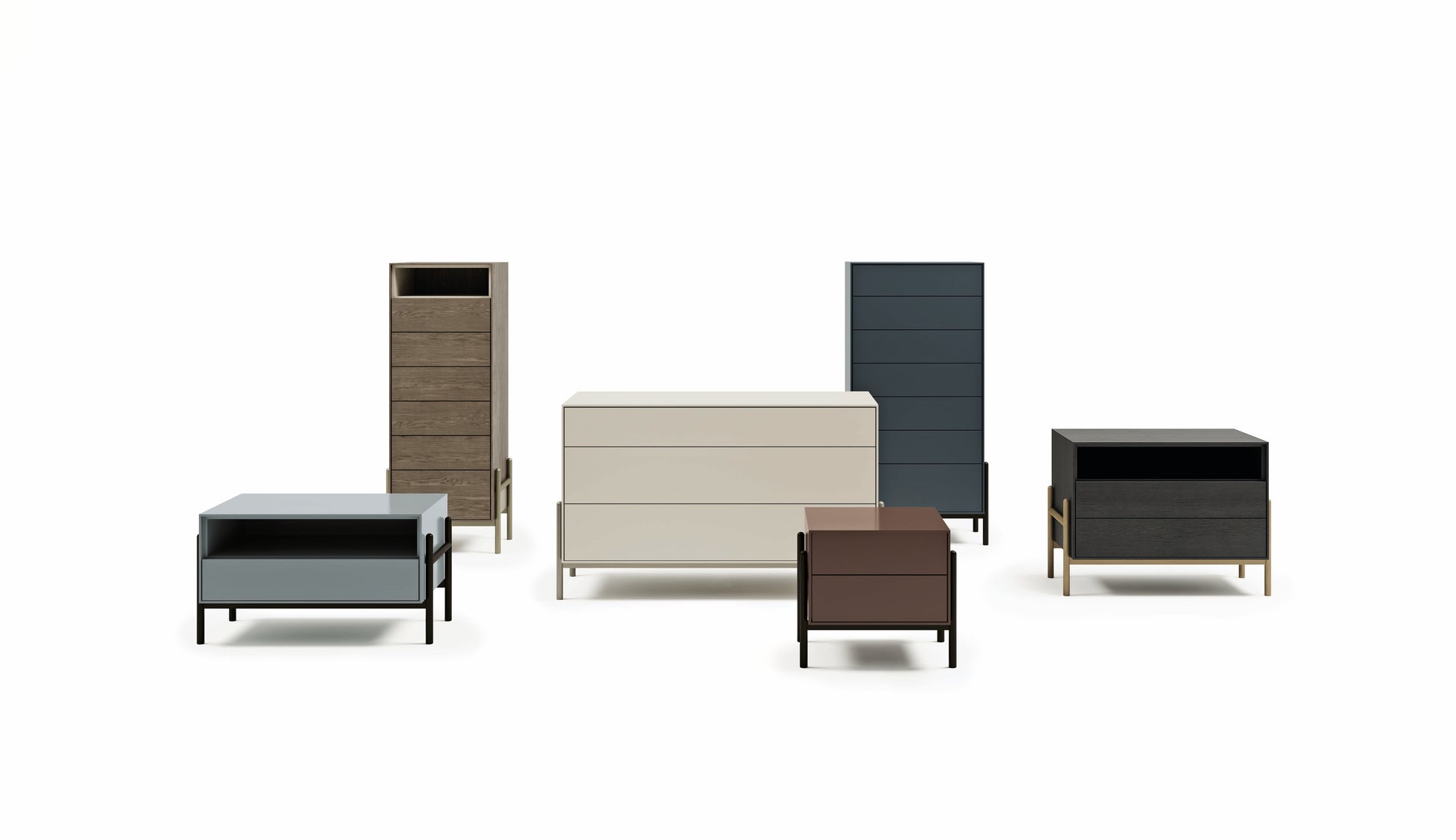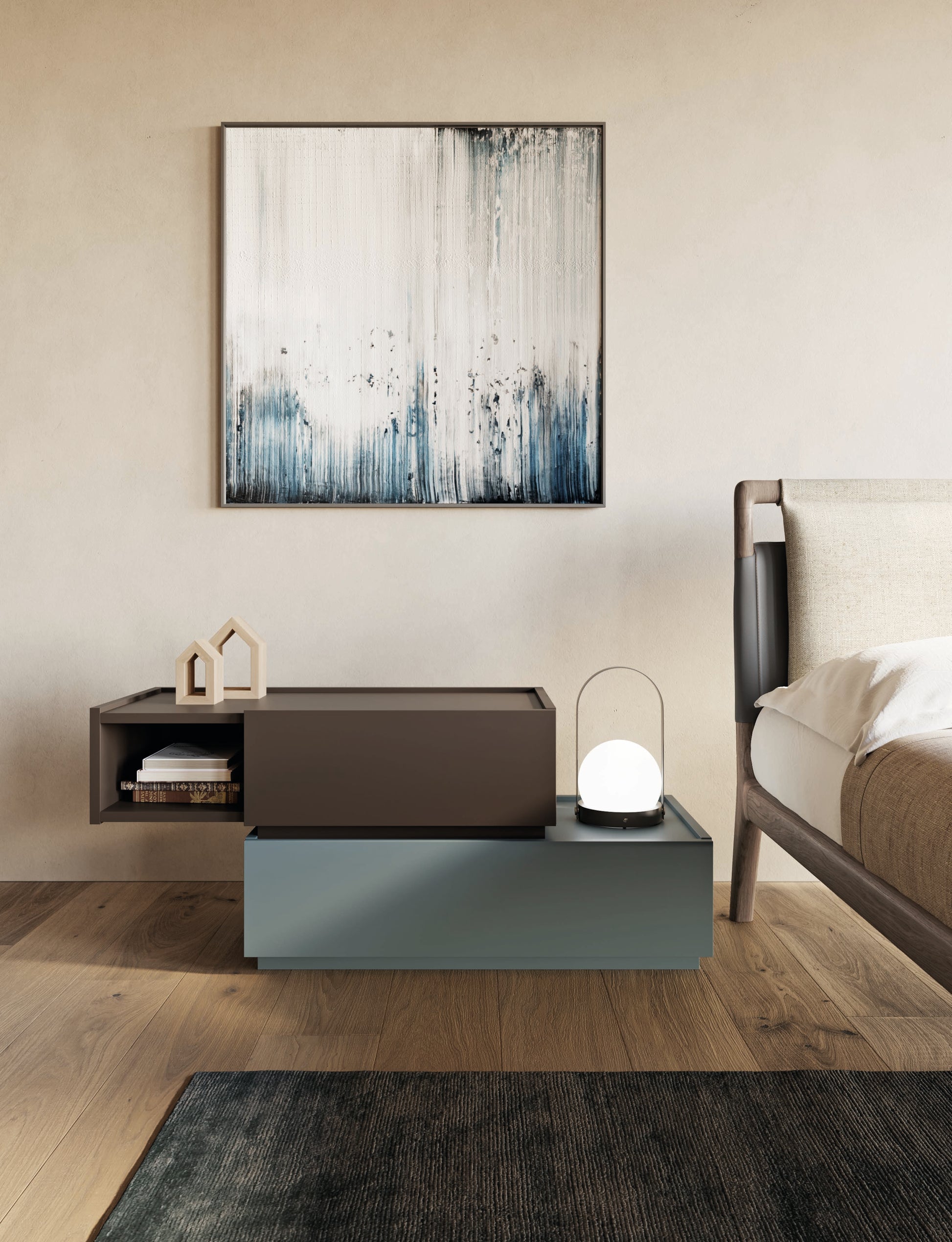 La linearità essenziale dei contenitori notte Slim, unita a una scocca con due lati. Nuova dinamicità e opportunità di giochi di contrasti.