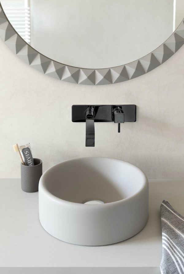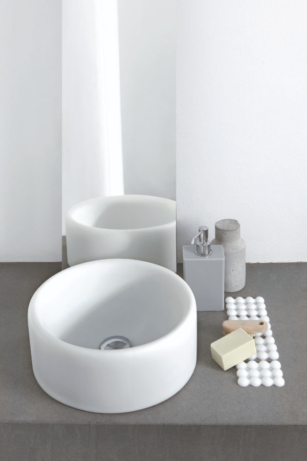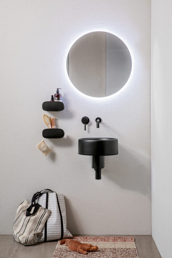Il lavabo può essere installato su 4 tipi diversi di supporto in metallo verniciato a scelta tra nero, sabbia e bianco.