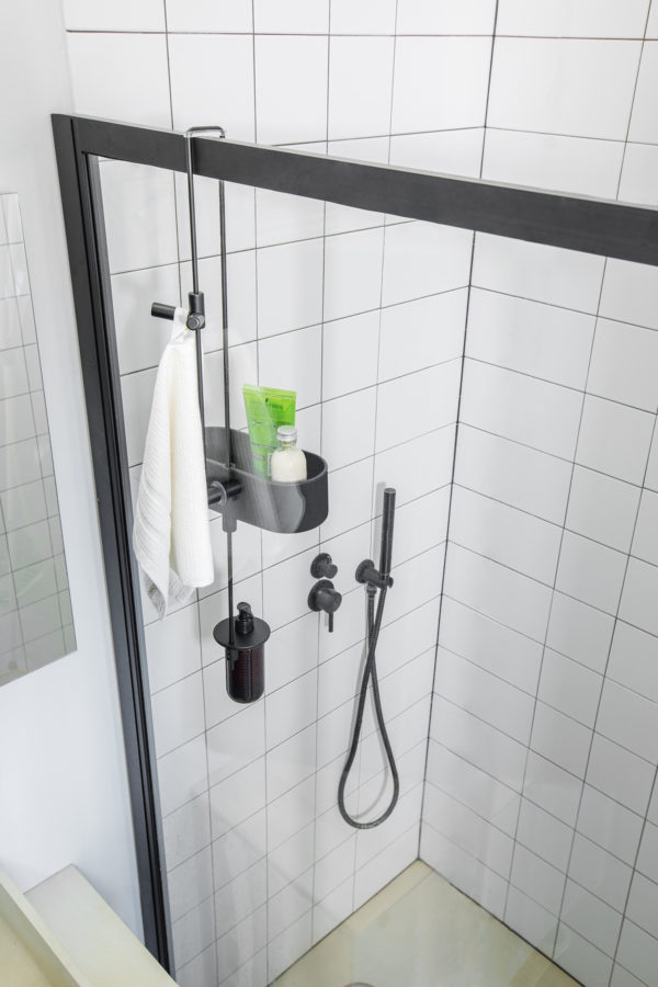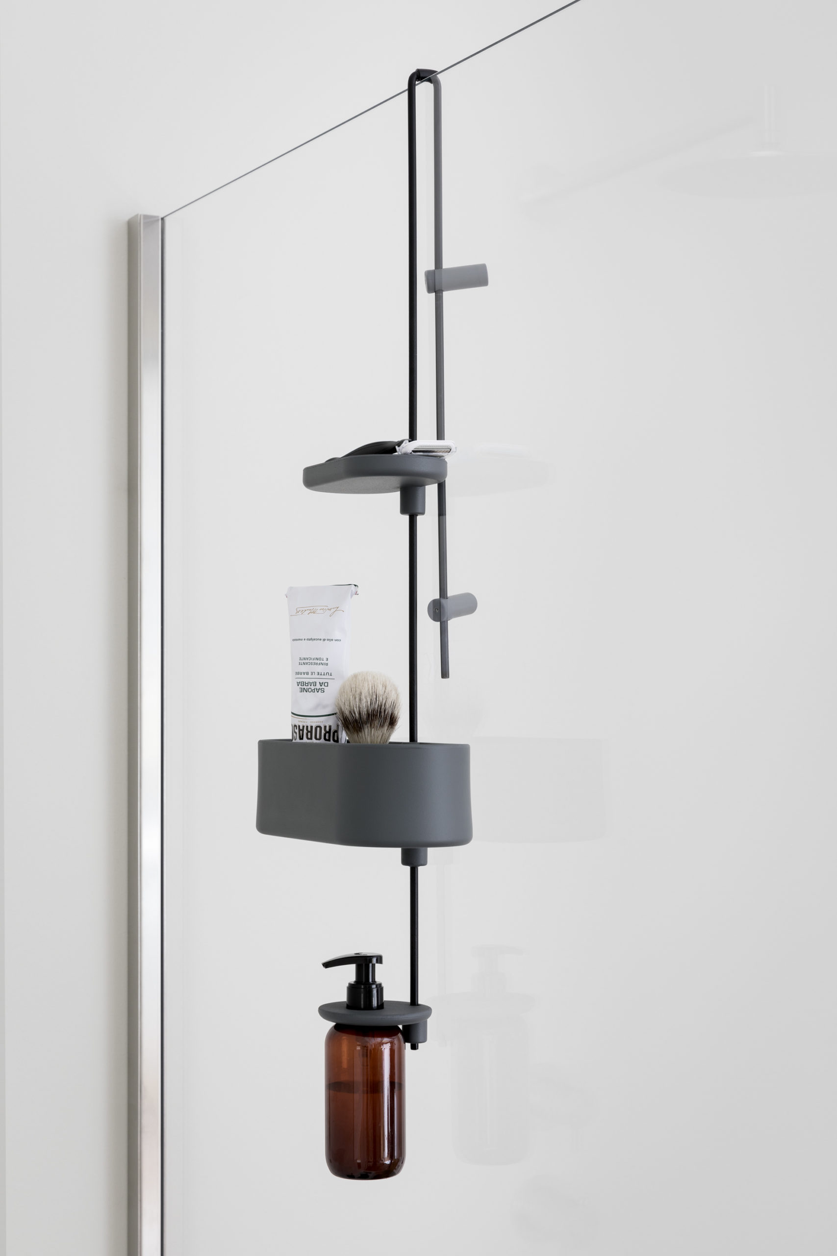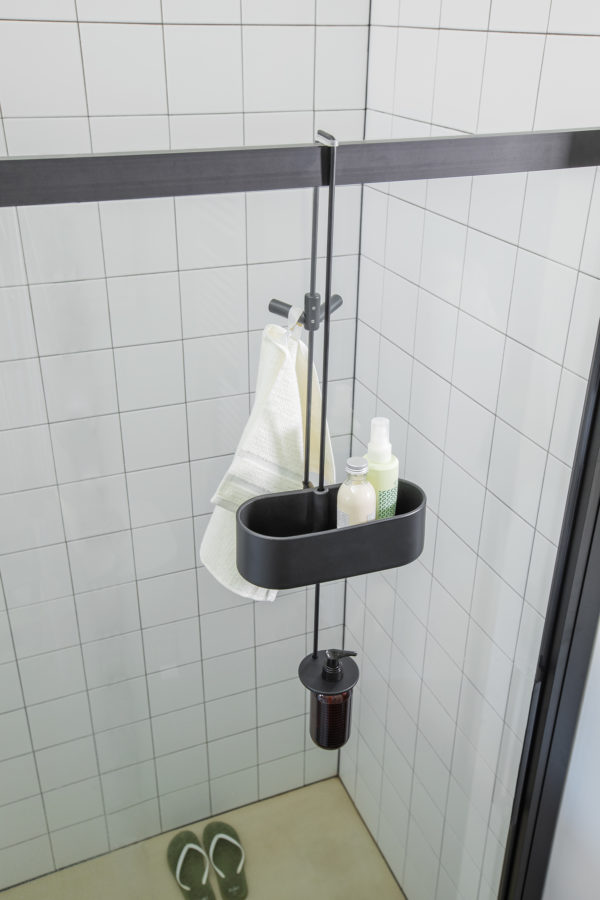 Filo è un elemento unico che unisce vari accessori creando delle composizioni per la doccia, per la parete accanto al lavabo, per la cucina e la zona ingresso. I singoli accessori sono introdotti in un filo e possono essere regolati in altezza a seconda delle esigenze personali. Filo doccia si posiziona a cavallo del cristallo senza bisogno di forare.