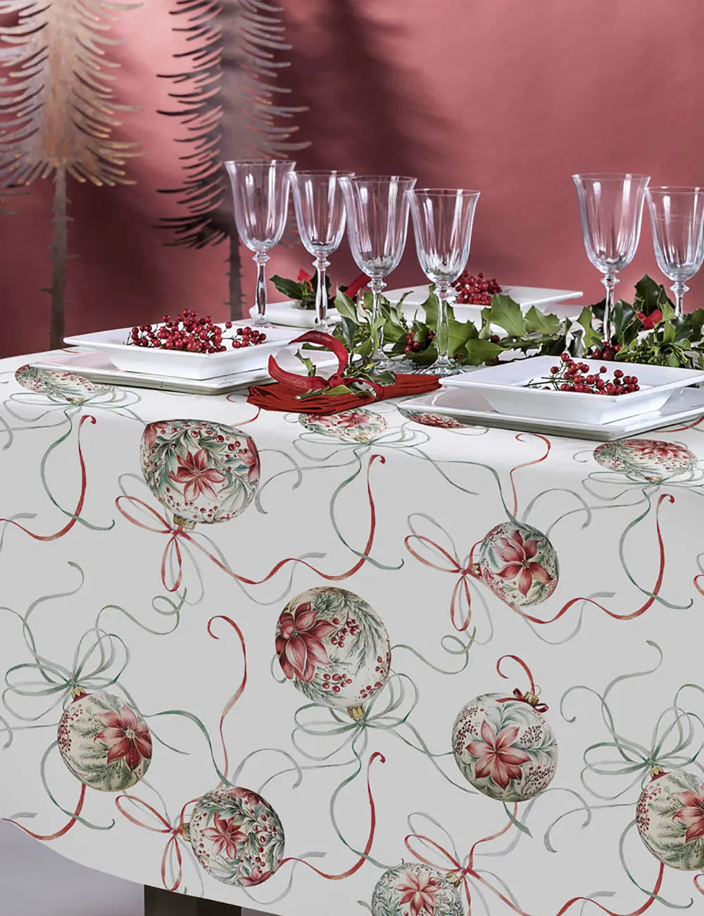 Tovaglia stampata in digitale realizzata con tessuto 100% cotone. Confezione con orlo di 2 cm. Il prodotto viene consegnato in un’elegante scatola. Vesti la tua tavola di Natale con lo stile e la qualità inconfondibile di Tessitura Randi.