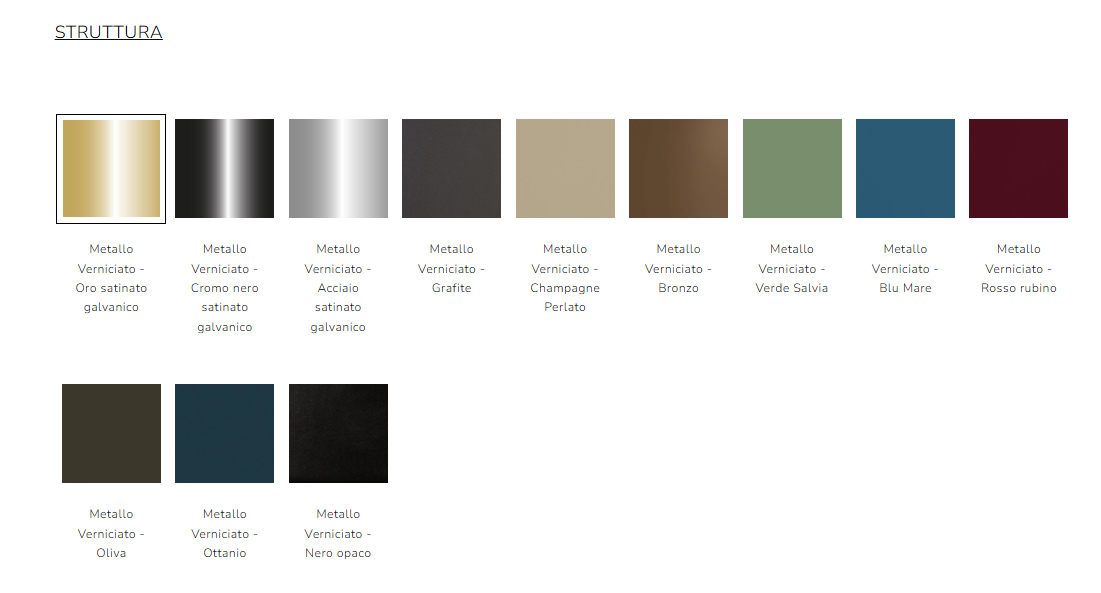LAMPADE con struttura IN METALLO verniciato con trattamento satinato GALVANICO