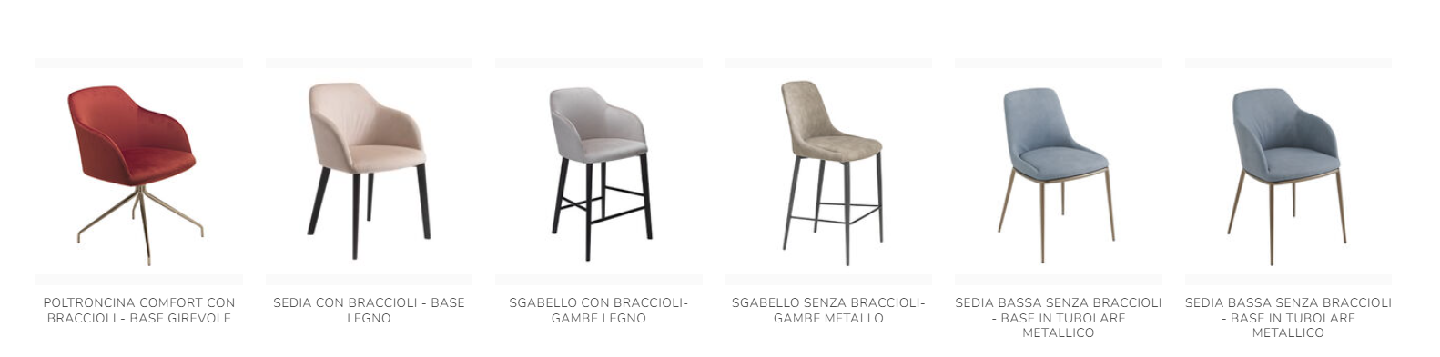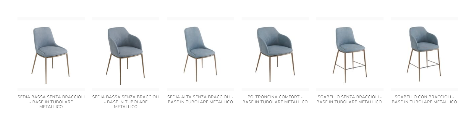 Personalizza la tua sedia, rendila perfetta per il tuo progetto d’arredo. Scegli materiale e finiture delle gambe, scegli colore e materiale del rivestimento tra le tante opzioni offerte.