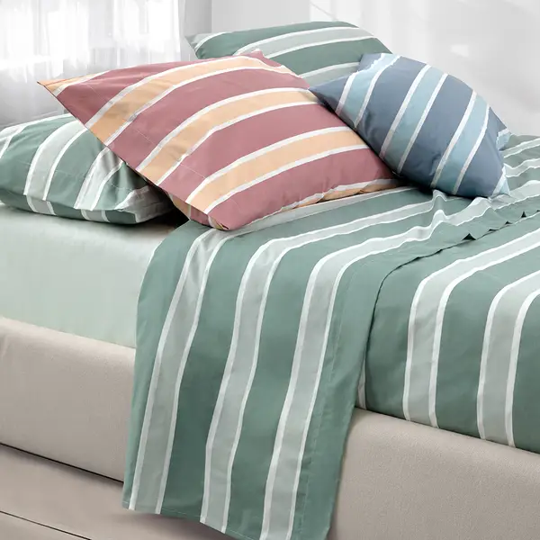 Completo Lenzuolo-copriletto Mina - Una riga contemporanea dal gusto raffinato con Mina, il nuovo completo lenzuolo-copriletto della Collezione Privè di Somma 1867, stampato in morbido e fine percalle di puro cotone: un tessuto naturale, dalla mano morbida e sofisticata. Il completo lenzuolo-copriletto, disponibile esclusivamente nella dimensione matrimoniale 250x290, è composto da lenzuolo superiore con balza stampata, sottolenzuolo con angoli 175x200 e coppia di federe. La collezione Privè offre una ricca proposta di fantasie e cromie dallo stile fresco, giovanile e di tendenza, per arredare ogni ambiente con eleganza, grazie alle pregiate materie prime che vengono attentamente ed accuratamente selezionate da Somma 1867. Certificato Oeko-tex che garantisce l'assenza di sostanze nocive per la salute dell'uomo.