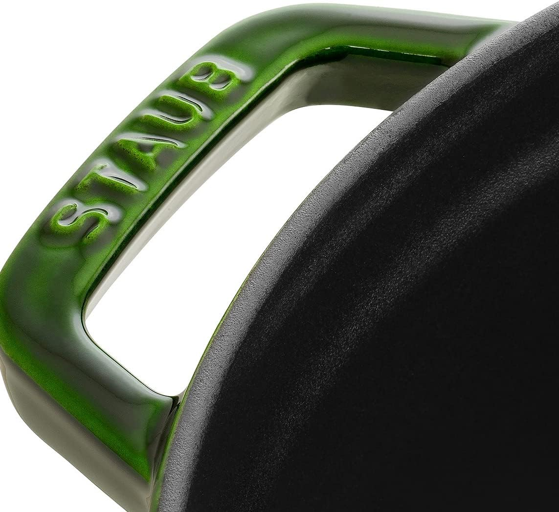 - Contenuto: 1x Casseruola STAUB, Dimensioni con coperchio + maniglie (LxA): 30 x 15,3 cm, Diametro: 28 cm, Diametro base: 19,2 cm, Capacità: 3,8 L, Peso: 4,6 kg, Colore: Verde basilico, 40509-356-0