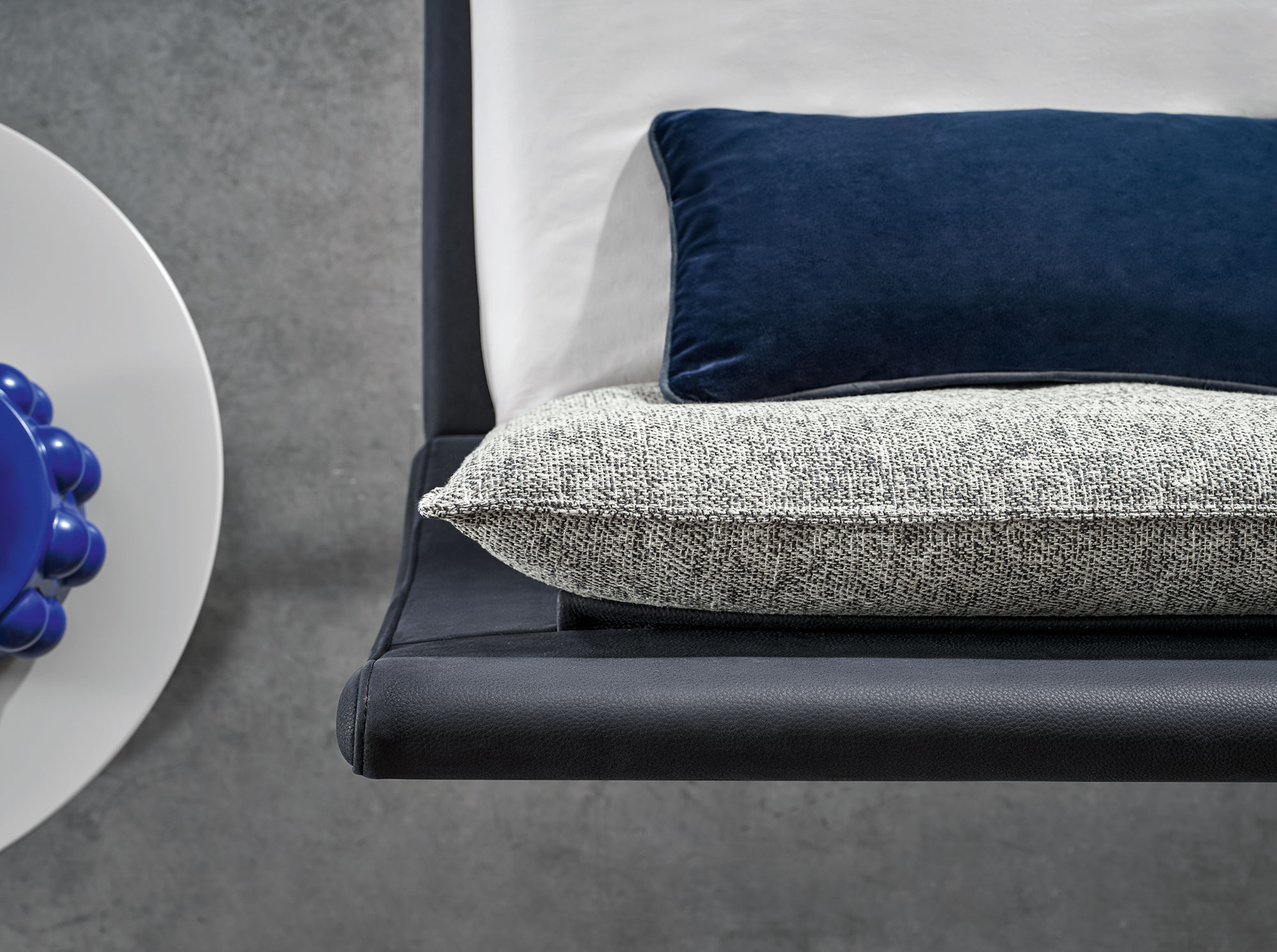I due cuscini appoggiati alla testiera sostengono il corpo comodamente e diventano un dettaglio di stile da scegliere seguendo il proprio gusto: a contrasto con il rivestimento o in un insieme più armonico e discreto.